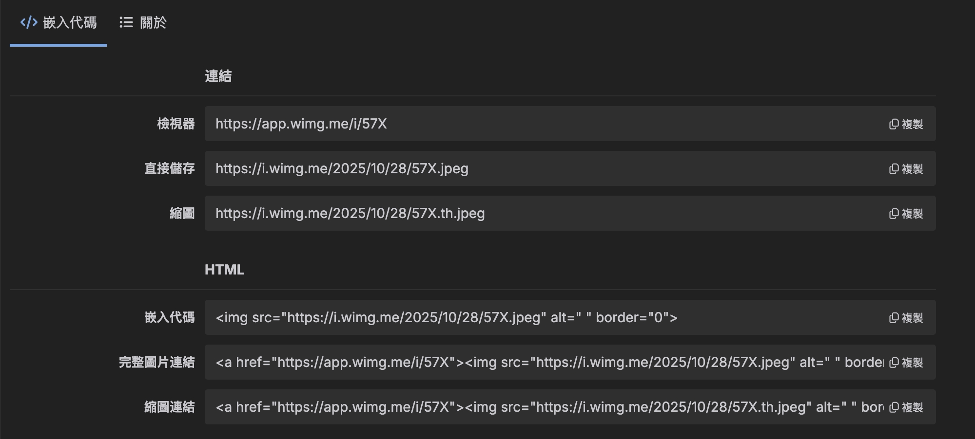 在資訊區下方,您可以找到該圖片的 直接連結(URL), 以及更多關於圖片的相關資訊。