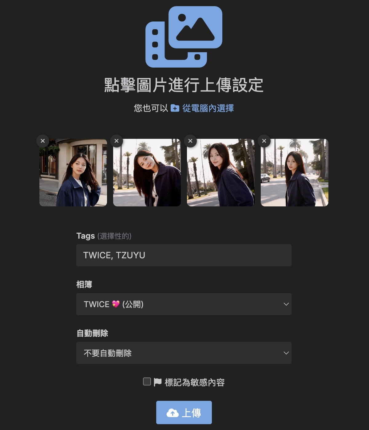 當上傳完成後,您可以建立新的相簿, 或是取得圖片的各種嵌入代碼。