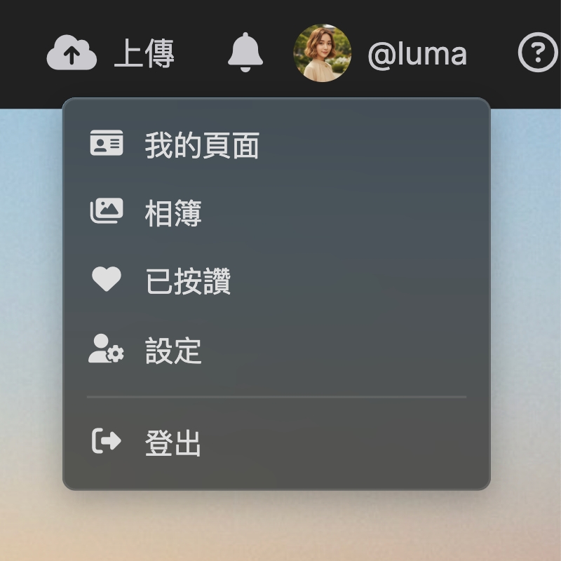 追蹤其他使用者後,您可隨時掌握他們的新上傳內容。 這些內容將會顯示於 追蹤中 頁面。